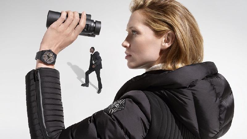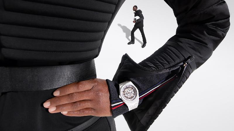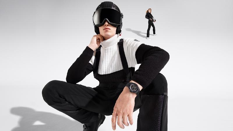 Crafted using a durable yet supremely comfortable softshell by Swiss fabric-maker Schoeller, the outfits are soft and stretchy without any of the bulkiness associated with traditional ski clothing – while remaining warm and breathable for a day on the ski slopes. In a timeless palette of black and white, the quilting design takes on an exclusively designed graphic linear motif, also found on the straps of the watches. The outfits are adorned with a specially developed logo for this capsule, consisting of a superimposed star and snowflake that also make up the watches’ open dial motif.
