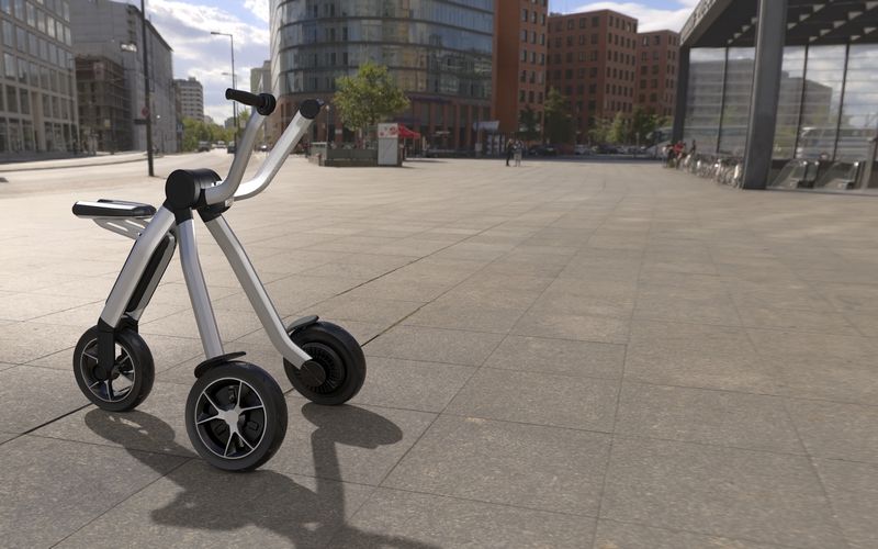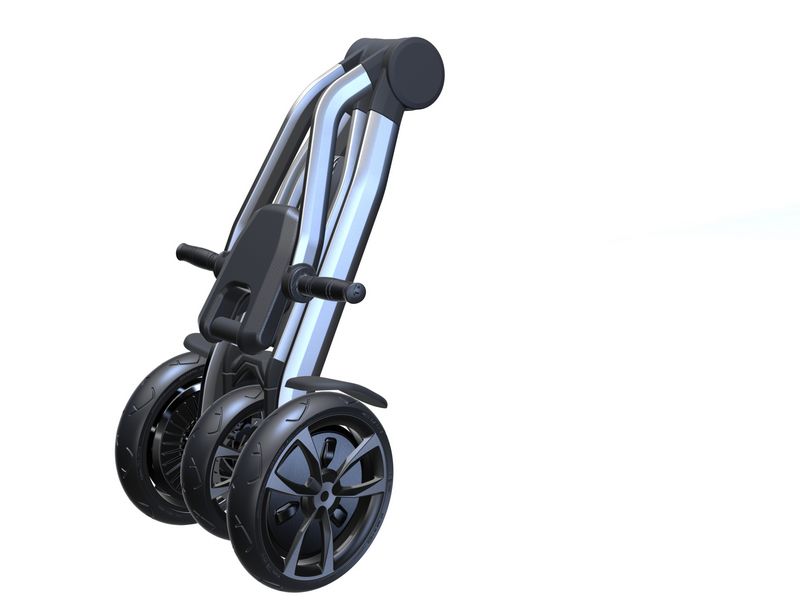 The TriCiti, developed by James Neugebauer, Torsten Gerhardt and Robert Spahl – all working within Vehicle Architecture, Ford of Europe – is also designed to be both a rideable device and all-purpose carrying assistant. The foldable transportation solution can be adapted to carry shopping or items such as golf bags, and can easily be taken onto public transport or stored in a vehicle. The TriCiti has a range of 30 kilometres (19 miles) and a top speed of 20 km/h (12 mph).