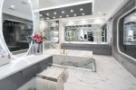 Discover the world’s most prestigious gatherings & exhibitionsPart of the sumptuous, Versace-inspired primary suite, the primary bath features a floating tub underlit by LEDs and surrounded by a channel of titanium fire glass. The light’s colors can change and pulsate. At the touch of a button, the glass walls of the bathroom’s water closet turn opaque for privacy.