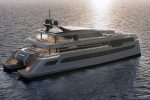 The low drag and efficiency provided by the vessel’s twin-hull design will allow an autonomy of over 5000nm with 90 000L of fuel capacity. Powered by twin 3400 HP engines, the catamaran superyacht will carry three tenders and a wide selection of watertoys and PWC’s.