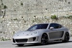 The GEMBALLA MISTRALE, in a breathtaking mix of crystal grey and orange, is probably one of the most fascinating luxury sports limos ever and is technically based upon the Porsche Panamera Turbo. It is reminiscent of the GEMBALLA AVALANCHE super sports car, its profile in particular, while the distinct “aerodynamic rear” with its striking lamp graphics and diffusor inlet is a real eye-catcher.