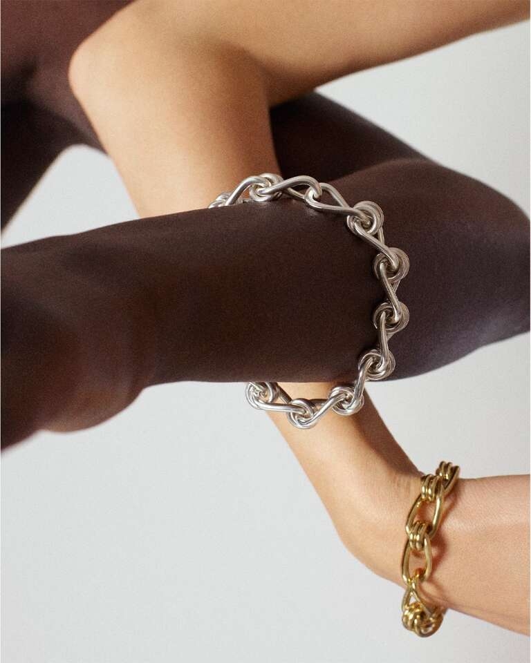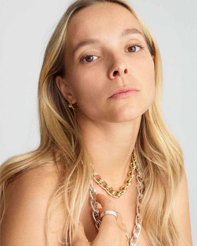 The collection comprises a necklace – one of Charlotte Chesnais’ favorite pieces – as well as a chain bracelet with large links in a solid vermeil and a silver version. The capsule also includes three revisited Creole style earrings in three formats, large, small and mini.