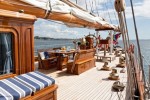 That original Germania was built for Dr. Gustav Krupp. She won the 1908 Cowes Week and was victorious at numerous other regattas except — for obvious reasons — when competing against Kaiser Wilhelm’s yacht Meteor. In 1912, the original Germania competed in 19 regattas, winning 10 and coming second three times. Her racing career ended with the outbreak of World War I. In 1930, she sunk in a storm off Key Biscayne when her anchor dragged.