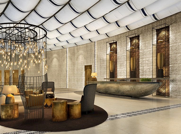 The Orient Jerusalem features high-end restaurants and bars, a museum, a boutique spa, a ballroom and event spaces, as well as a total of 250 guestrooms and an elegant rooftop pool and bar that crowns the building. Hirsch Bedner Associates (HBA) design team, one of the leaders in hospitality interior design, drew widely on reference to local color, materials and craft traditions, whilst keeping the vernacular of these spaces contemporary.