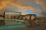 Crowning the new building at the 10th level, the space offers spectacular views from the cabanas and pergolas by the poolside. The glamorous, electric blue and white tiled bar feature artisan ceramic tables discovered by HBA designers in the local markets.