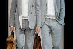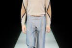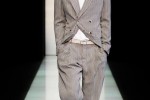 Giorgio Armani 2013 spring summer men silhouette is a natural, slightly elongated one, with four or six buttons and with unstructured, unpadded shoulders. The jackets are paired with pleated trousers – the pleats create a softness around the hips and gather around the bottom of the trousers.