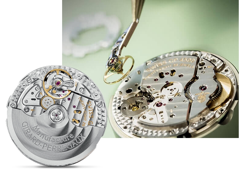 The Calibre GP01800-0033 features a very useful complication, developed and manufactured in-house that displays the date, days, months and leap years in a unique and distinctive way, making the information very easy to read. This complication only needs to be adjusted once a century thanks to its mechanical memory of 1’461 days, which corresponds to 4 years.