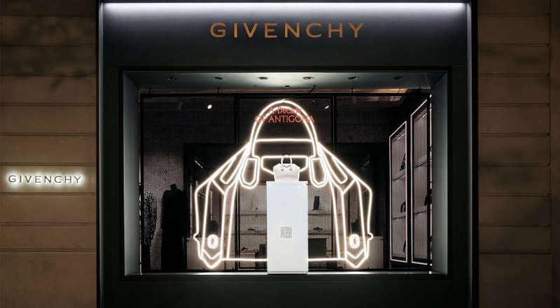 The anniversary of the Antigona is being marked, in the windows of Givenchy’s Paris boutiques, by a neon installation inspired by the bag’s iconic lines, which bridges the gap between the original design and its new, supple variation. These two visions of the same idea of leather goods reflect the creative freedom advocated by the couture house.
