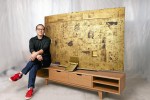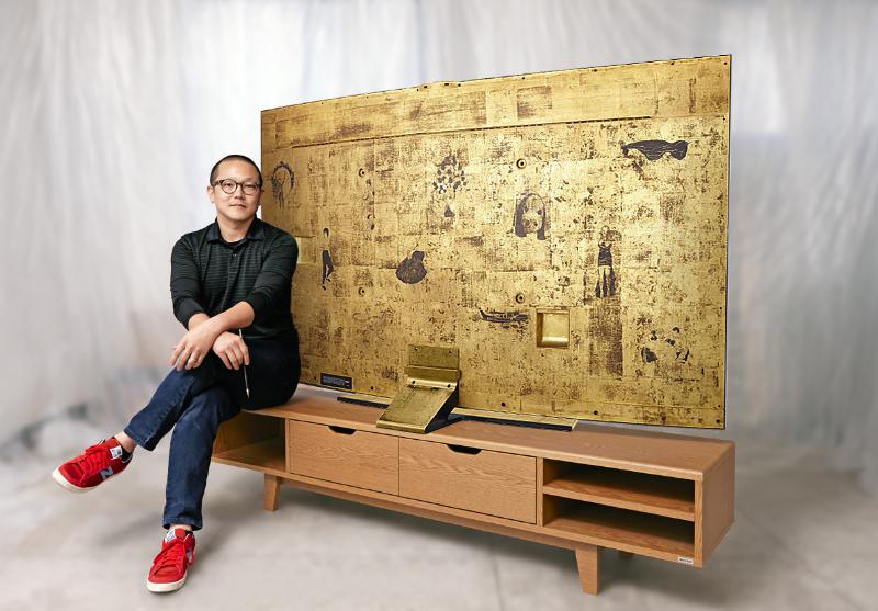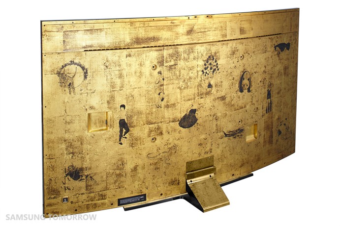 The cutting-edge TV was designed by Hong in connection with the theme, “Memory of TV.” It features iconic scenes and famous characters from television, which are brought to life through intricate gold-lacquered paintings on the TV’s rear face.