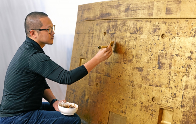 Hong was commissioned by Samsung for his expertise in Ottchil, a Korean lacquer painting technique that dates back to the Neolithic Era, and for his ability to apply a traditional art form onto modern materials. Just as it was once used to preserve valuable ancient artefacts, Hong’s use of Ottchil was deliberate and symbolic – to preserve those cherished moments of entertainment that TVs deliver.