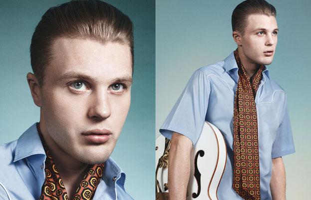 Shot by world-renowned fashion and portrait photographer David Sims, the images of the Prada Spring/Summer 2012 menswear campaign are presented in rich tones and deeply saturated colours echoing 1950s studio portraiture, and subtly referencing the celluloid iconography of the womenswear campaign.