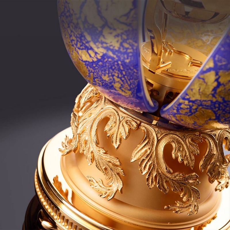 All 985 parts of GOLDEN H chronometer are made, polished and assembled manually, with absolutely no industrial assembly. It takes 6 kg of pure gold to produce one chronometer, but it can also be ordered in silver or platinum.