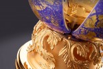 made of solid 18 carat gold with exclusive rare Venetian Murano glass in the globe shell and suspended in a massive gold gimbal to compensate for the movement of the ocean wave.
