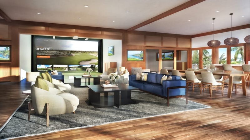 One of the indoor bays features Topgolf Swing Suite, a teaching studio featuring a golf simulator and lounge. The only offering of its kind in Hawaii, the tech-laden Swing Suite combines serious instruction with a menu of games. Hualalai Golf Hale’s lounge and comfort station will boast a full kitchen, bar, retail, and various sitting areas with large-screen TVs.