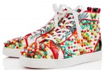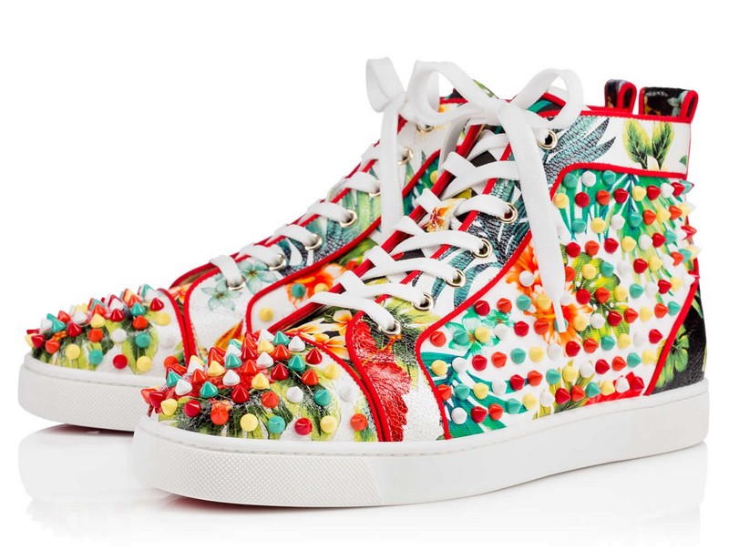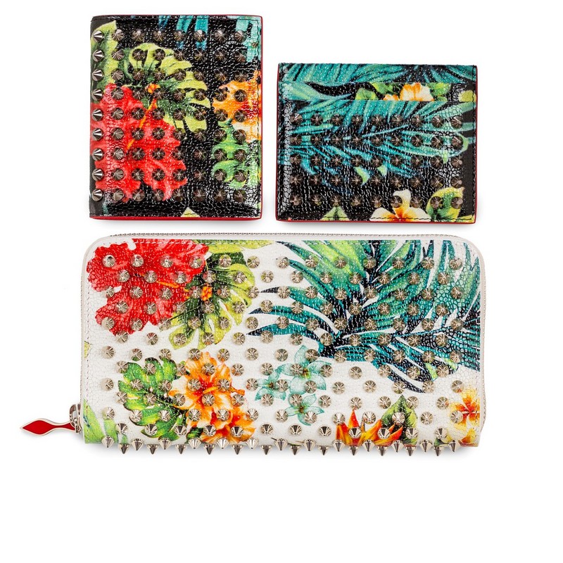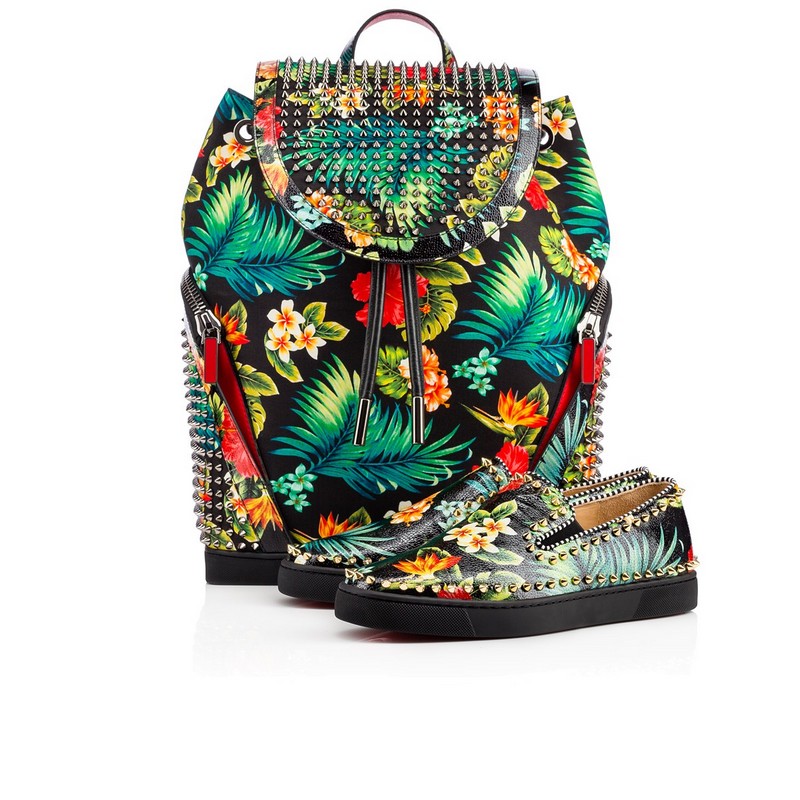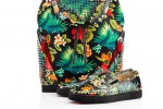 On handbags, including the women’s Triloubi and men’s Triloubi and men’s Trictrac, the vibrant flora are emphasized with Christian Louboutin’s signature metallic spikes, while men’s sneaker Louis Orlato takes an even more colourful approach, adorned with bright multi-spikes. Classic Pigalle Follies takes to Calf Caviar in both white and black variations at a new 55 heel height, as well as the classic 100. Also for women, the new, slim-soled Seava sneaker is ready to hula in a white Hawaii Kawai print.