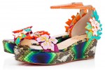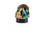 The integration of a unique Python Electric skin on the heel and platform of each shoe transports to lush overgrown tropics. For the summer adventurer, espadrille Mom and Dad Flat features Hawaii Kawai in a breathable toile.
