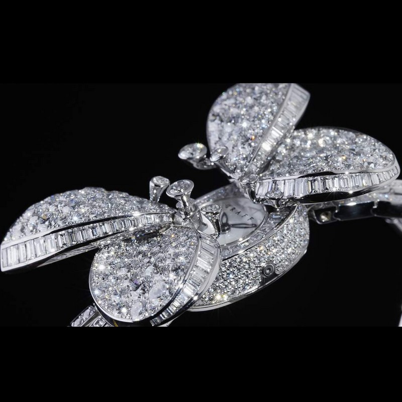 Discover the world’s most prestigious gatherings & exhibitionsGraff’s master craftsmen spent many months testing the design, involving advanced 3D technology to realise the butterfly wings, mapping each curve and contour to reflect accurate movement and shape of the butterfly while ensuring the composition and construction were perfected.