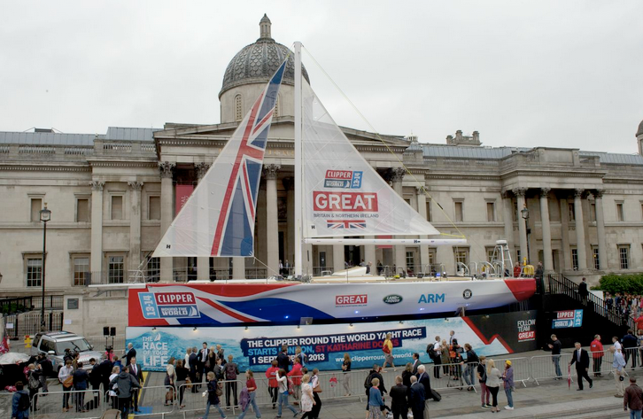 The GREAT Britain yacht will be flagship of Clipper Round the World Yacht Race fleet as longest ocean race on the planet prepares to depart London 1 September. The yacht was launched on the North Terrace of Trafalgar Square, while legendary UK yachtsman Sir Robin Knox-Johnston named the GREAT Britain entry in the 2013-14 edition of the unique Round the World Yacht Race.