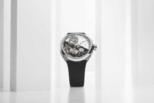 At the pinnacle of the timepiece, the hour-ring sits at its highest point, almost touching the sapphire crystal. The luminescent white hour and minute hands appear to be suspended in mid-air, creating an illusion that one can almost reach out and touch time itself. The movement’s patented mechanics are revealed through the double openworked “arch bridge” with suspended wheels, showcasing a captivating architectural design. With bridges, elevations, levels, contrasts, and vanishing lines, the watch draws inspiration from contemporary metropolises, inviting Greubel Forsey collectors to explore the fascinating intersection between skyline and waterfront.