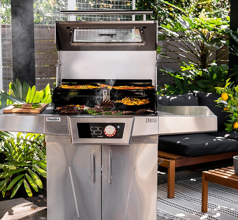 The digital control dial features color-coded rings that display your grill’s status during use. This gas grill delivers an incredible temperature range with a MAX Mode capable of delivering 700+ degrees of heat across 540 square inches of cooking space for steakhouse-quality searing. The Cruise gas grill features the patented Amplifire cooking system that takes grilling to another level by preventing flare-ups and helping you grill the juiciest foods you’ve ever made.