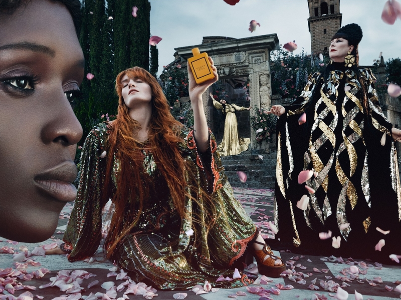 Discover the world’s most prestigious gatherings & exhibitionsThe new Gucci Beauty Gucci Bloom campaign opens with Florence Welch exploring the abandoned theatres of La Scarzuola, a surrealist architectural compound built around an old Franciscan convent. Award-winning photographer and director Floria Sigismondi created a garden of dreams where magic blooms and intensifies to its crescendo with a floral explosion showering the four protagonists: award-winning actress and director Anjelica Huston, singer-songwriter Florence Welch, actress Jodie Turner-Smith and designer Susie Cave. Some scenes take inspiration from the popular French musical film ‘Peau d’Âne,’ directed by Jacques Demy, said Gucci.