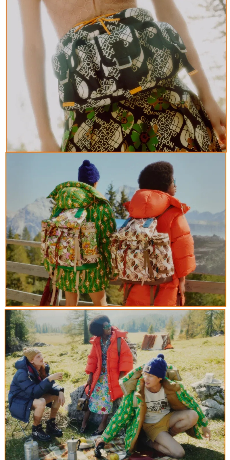 Gucci and North Face outfit those who seek adventure.