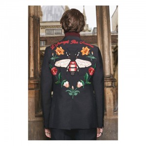 The GucciDIY service extends to Alessandro Michele’s tailored embroidered jacket.