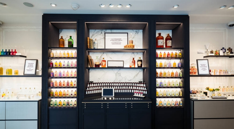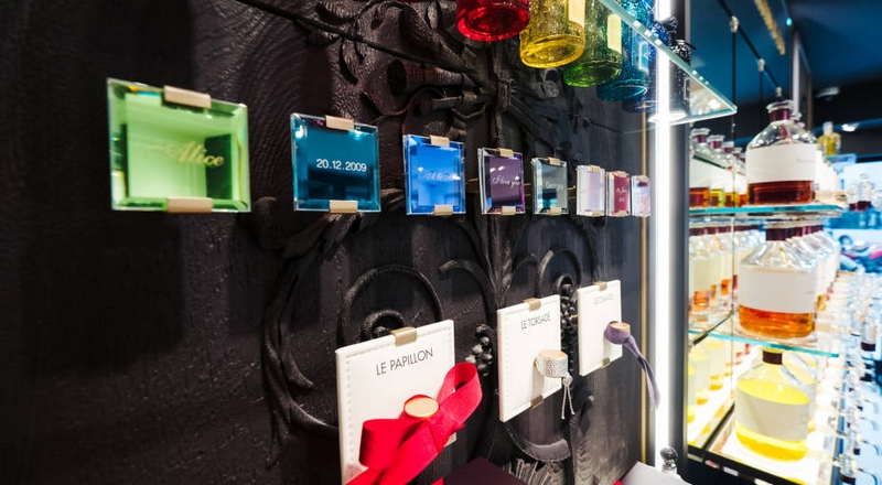 To guarantee the perfect quality of fragrances, the scents are kept in a temperature-controlled “perfume cellar” behind UV-blocking glass – just like grand crus wines.