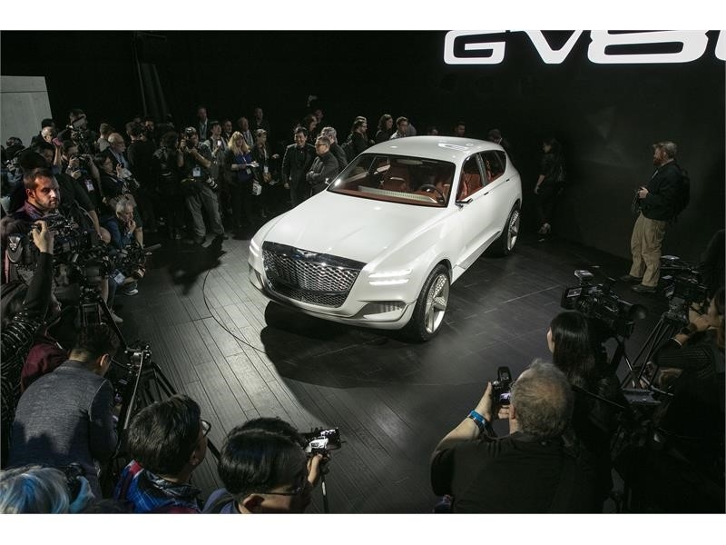 The much-anticipated, three-row (available) GV80 will become the fourth model in the Genesis lineup, joining the G70, G80 and G90 sedans. Like its sedan siblings, GV80 will be based on a rear-wheel-drive platform unique to the Genesis brand; all-wheel drive will be optional. The “V” in the GV80 marque represents versatility, according to the automotive manufacturer.