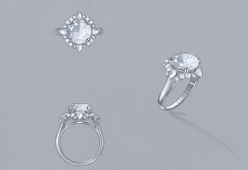 story.Adapting each custom design with the joint skill of expert designers, gemologists and craftsmen, each jewel is a unique expression of