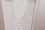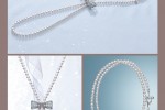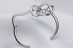 The highlights of the Mikimoto × Hello Kitty collaboration collection are the long multi stranded necklace with Kitty’s face decorated with rubies and onyx, a pair of earrings, and silver bangles with Kitty’s silhouette.
