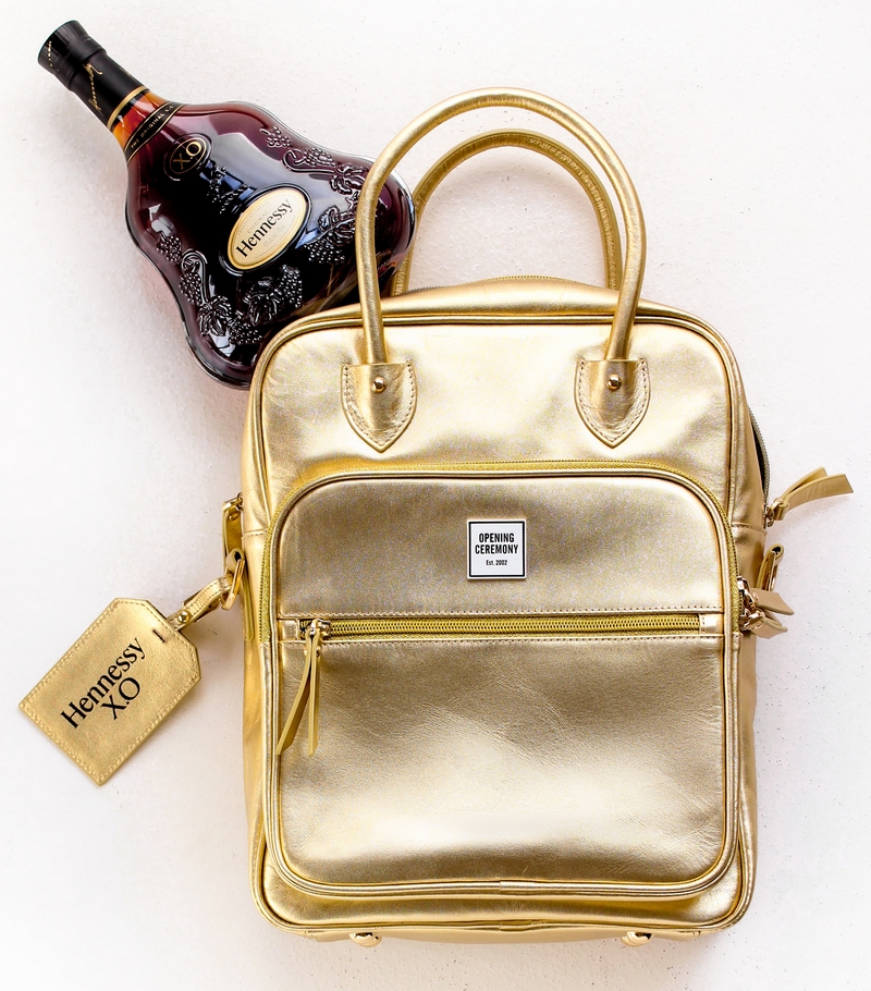 “The collaboration with Hennessy was born from a shared passion for bringing together and celebrating different cultures. For this design, we wanted to explore and honor our heritage by drawing inspiration from family traditions, our world travels, and the blending of our Eastern and Western backgrounds,” says Opening Ceremony co-founder, Humberto Leon. “The bold, rich flavor of X.O reminds us of family celebrations and toasts to success and good fortune, so to capture that spirit, we created a modern, luxurious travel bag in vibrant gold, a color that represents prosperity in our Asian cultures.”