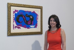 Assistant Curator Flavia Frigeri with The Dragon, in Room 2 of Henri Matisse The Cut-Outs at Tate Modern