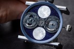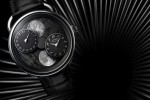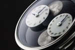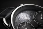 Within this space-time, metal, stars and rock seamlessly merge the watch exterior with the movement to form an unprecedented technical and aesthetic display of simple and graphic readability. The double moon here eclipses a traditional aperture-type display, instead covering the entire surface of the dial.