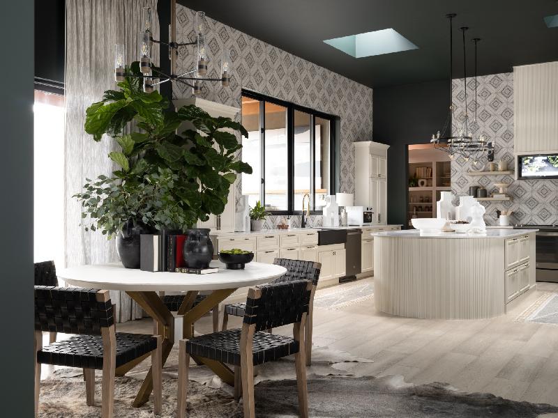 The HGTV Smart Home 2023 features a state-of-the-art kitchen equipped with technologically advanced appliances, including a digital-range hood over the stove.