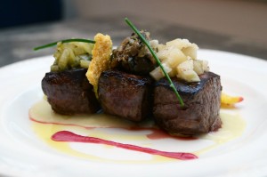 Fillet of beef tournedos with Jerusalem artichoke, chicory and tamarind