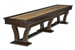 With a hint of Art Deco styling, the timeless De Soto has a soft espresso finish, reverse arch pedestal base, rounded apron and mother-of-pearl sights. This billiards table, which starts at $7,499, comes in 8 or 9 foot sizes and has a matching rack available for $999.