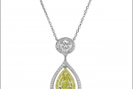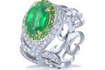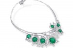 The Greenfire necklace incorporates seven cushion cut emeralds totalling 46.20 carats surrounded by 17.38 carats of round brilliant cut diamonds, while The Greenfire Pendant features a 12.41 carat cushion cut emerald surrounded by round brilliant cut diamond.