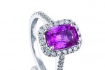 Celebrate the most inspiring stories of passion, life and victories with a ‘Radiant Orchid’ elegant vintage design ring with a vibrant purplish-pink Sapphire or a Blush Pink Sapphire Ring in 18ct white gold with pink sapphires & diamonds. The shades of sapphire reflect the floral universe and its plenitude of colours.