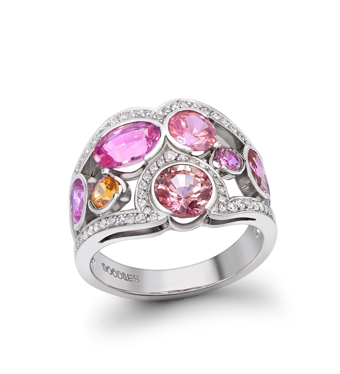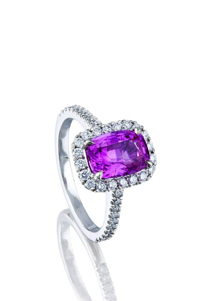 Celebrate the most inspiring stories of passion, life and victories with a ‘Radiant Orchid’ elegant vintage design ring with a vibrant purplish-pink Sapphire or a Blush Pink Sapphire Ring in 18ct white gold with pink sapphires & diamonds. The shades of sapphire reflect the floral universe and its plenitude of colours.