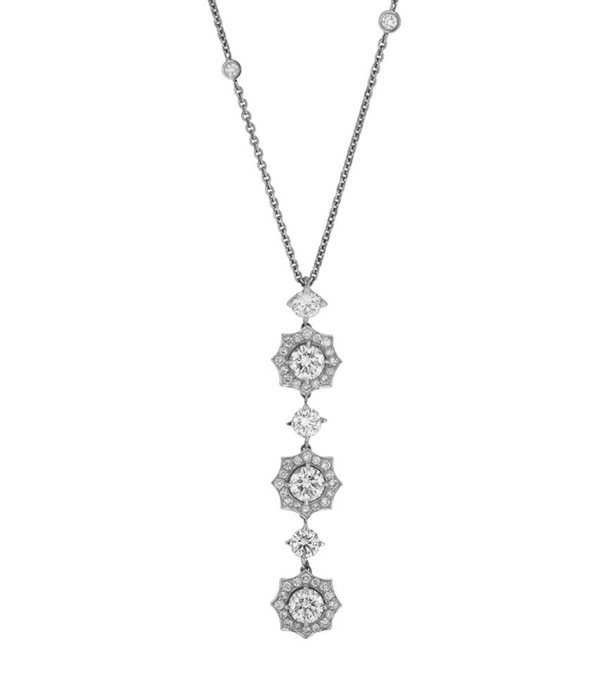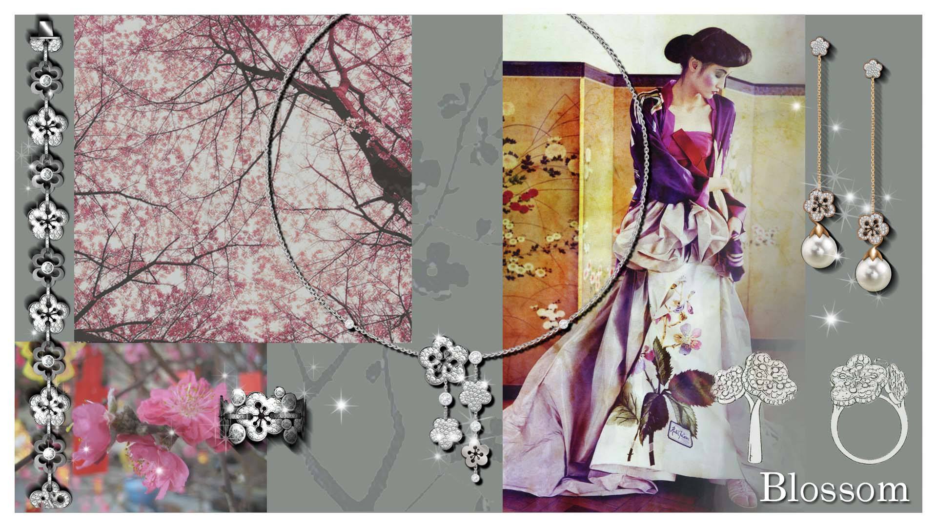 The Cherry blossoms adorned on antique Japanese kimonos, as well as the ancient tradition of Hanami, ‘flower viewing’ has been used for centuries to inspire. The wonderfully delicate and impassioned Blossom design has white and rose gold petals that sparkle with diamond dew drops. From long necklaces to mini stud earrings, this lovely design is the perfect embodiment of youthful joy and relaxed glamour.