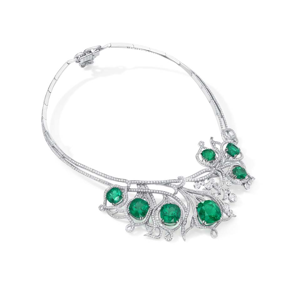 Inspired by the ray of light travelling through a virgin forest, Boodles Greenfire high-jewelry collection was created using the finest untreated Colombian Emeralds from the Muzo mines. Petal shaped flames dance amongst swirling tendrils creating a natural harmony between the elements: earth and fire.