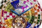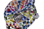 The watch case is invisibly set with 403 baguettes and a rose-cut of natural gemstones. The dial is showcasing the one minute flying tourbillon carriage with a power reserve of 100 hours.