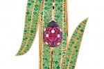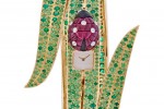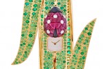 Yellow gold case. Ladybird in pink gold set with buff-topped Traditional Mystery Set rubies, white gold set with diamonds, onyx. Manual-winding mechanical movement (JLC 101). Bracelet in yellow gold set with round emeralds and round tsavorite garnets, clasp in yellow gold. Unique piece.