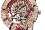 After coiling around the wrist, Bulgari’s snake symbol is now reinvented by wrapping itself for the very first time around the case of a round watch: the reptile literally twines itself around the watch dial, framing an entirely skeleton-worked Manufacture tourbillon calibre. This timepiece is available as a rare and exclusive creation, issued as a limited 50-piece edition.