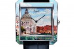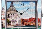 The micro-mosaic technique was used by Italian micro-mosaic specialist artist Cesare Bella for decorating the this Venice-inspired timepiece from dial to bezel. Cesare Bella created a masterpiece of precision by juxtaposing nearly five thousand miniscule glass tesserae, which combine to reveal a remarkable view of the Santa Maria Della Salute basilica overlooking the Grand Canal.