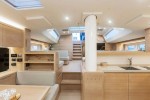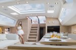 A cockpit, the size and comfort of which is unrivalled, includes three different areas for the owner and his guests: a spacious dining area with two large sofas and two ample areas devoted to relaxation and reading, one creating a continuation of the dining area and the other provided at the stern. The whole cockpit extends over a single-level deck area, designed to ensure free movement on deck, without obstacles. All this without affecting the generous roominess below deck.