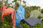 “David Hicks was known for contrasting borders — he even did it in his gardens — and you can see them throughout the collection: lace pockets and contrast paneling on slip dresses and tops. We picked out the things we love that Hicks did and then thought about how they would make sense on the body. Geometrics was another one of his signatures. We weaved it into the collection as a print and by using it as borders for other prints, like in the scarf print dress I’m wearing,” added Burch.