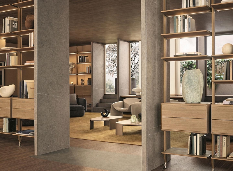 Volumetric harmony and flexibility are the keywords for Vincent Van Duysen’s Hector Night wall system for Molteni & C