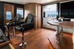 Fully opening sliding glass doors lead into the main salon, whose volume is further amplified through the signature full-height glass windows and opening glass doors to port and starboard in the dining area.